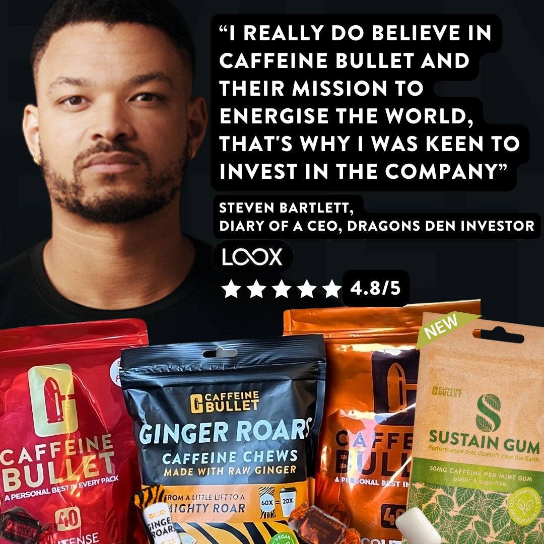 - MINTense Caffeine Bullets: Delivers a refreshing blast of spearmint that will awaken your senses. With each chew, you'll experience a burst of minty fresh flavour that revitalises your taste buds and fuels your energy levels. So good that it secured investment from notable Dragons, Steven Bartlett & Peter Jones, on the show "Dragons' Den."