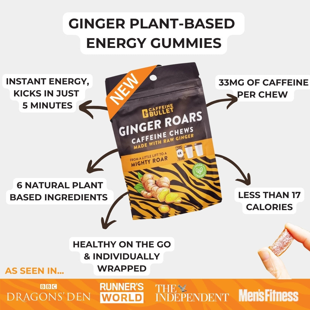 - 6 x Ginger Roars Chews - 33mg of Caffeine Per Chew (£3.49/$4.99)