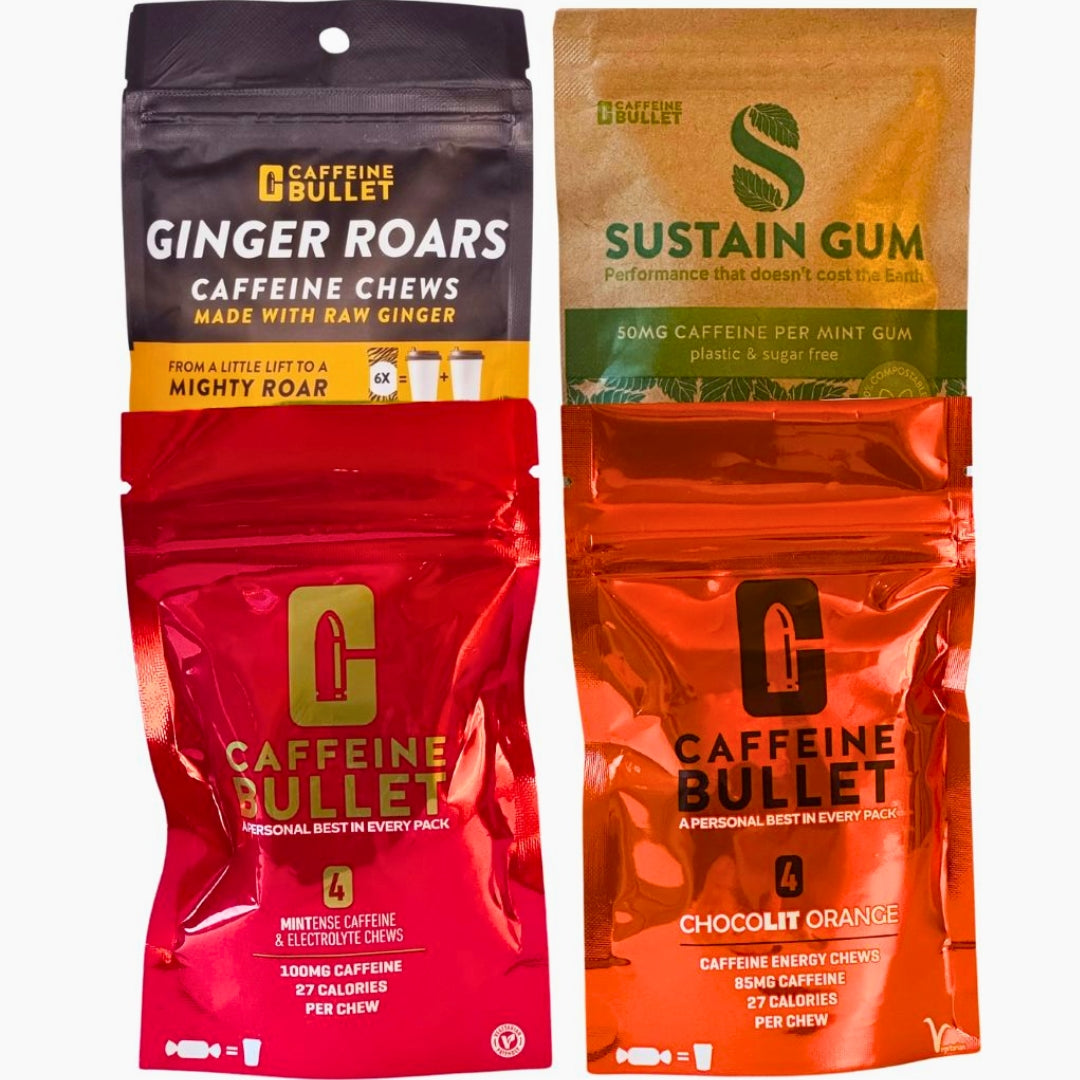 Performance Enhancing Caffeine Bullet Variety Bundle - Get the best of Caffeine Bullet with our newest bundle, featuring all four signature products! Perfect for customers wanting to explore the entire range or for newcomers testing flavours and caffeine strengths before diving in fully.