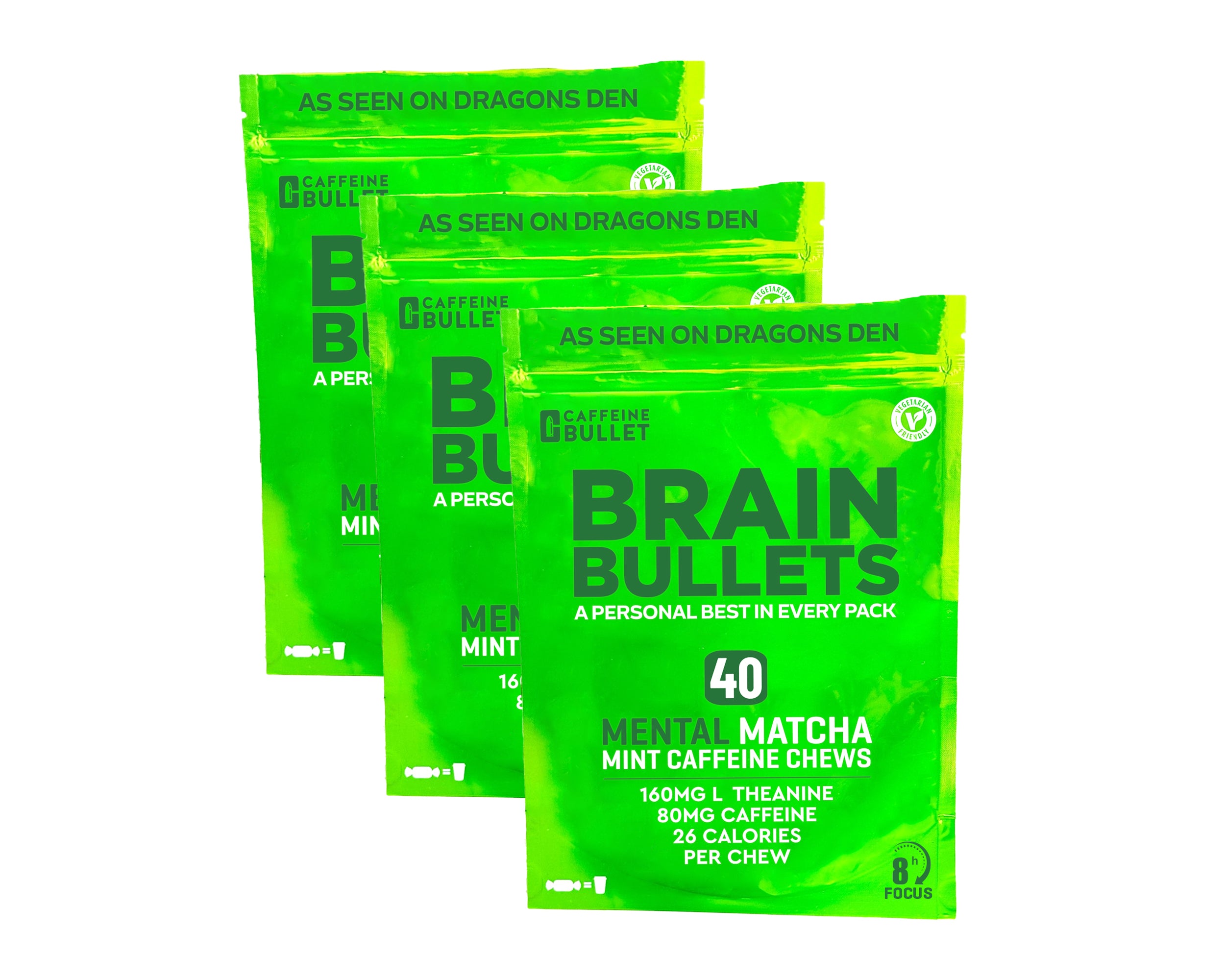 Mint Matcha Brain Bullet chews are crafted for boosting mental performance and productivity. These delicious matcha chews work rapidly just chew for 30 seconds to release the focus enhancing formula. Who are Brain Bullet chews suitable for? Whether you're powering through a long workday, studying for exams, or needing mental sharpness for a big project, these chews the answer. With clean, sustained matcha energy and a calming focus, they’ll keep you performing at your best for hours without crashing. Perfect for anyone seeking to improve concentration and clarity.