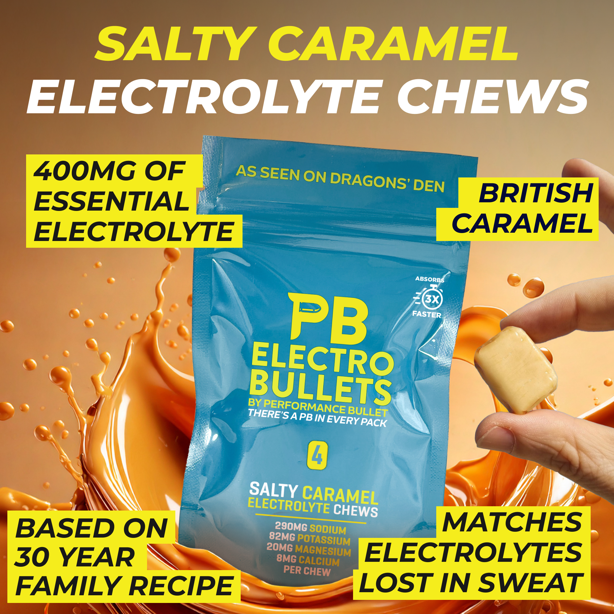Unlike drinks or powders, these convenient salted caramel electrolyte chews need no mixing or liquids, meaning instant and more efficient hydration. Electro Bullets work within minutes, ensuring you stay at your best and turning every moment into a chance to hit your Personal Best.